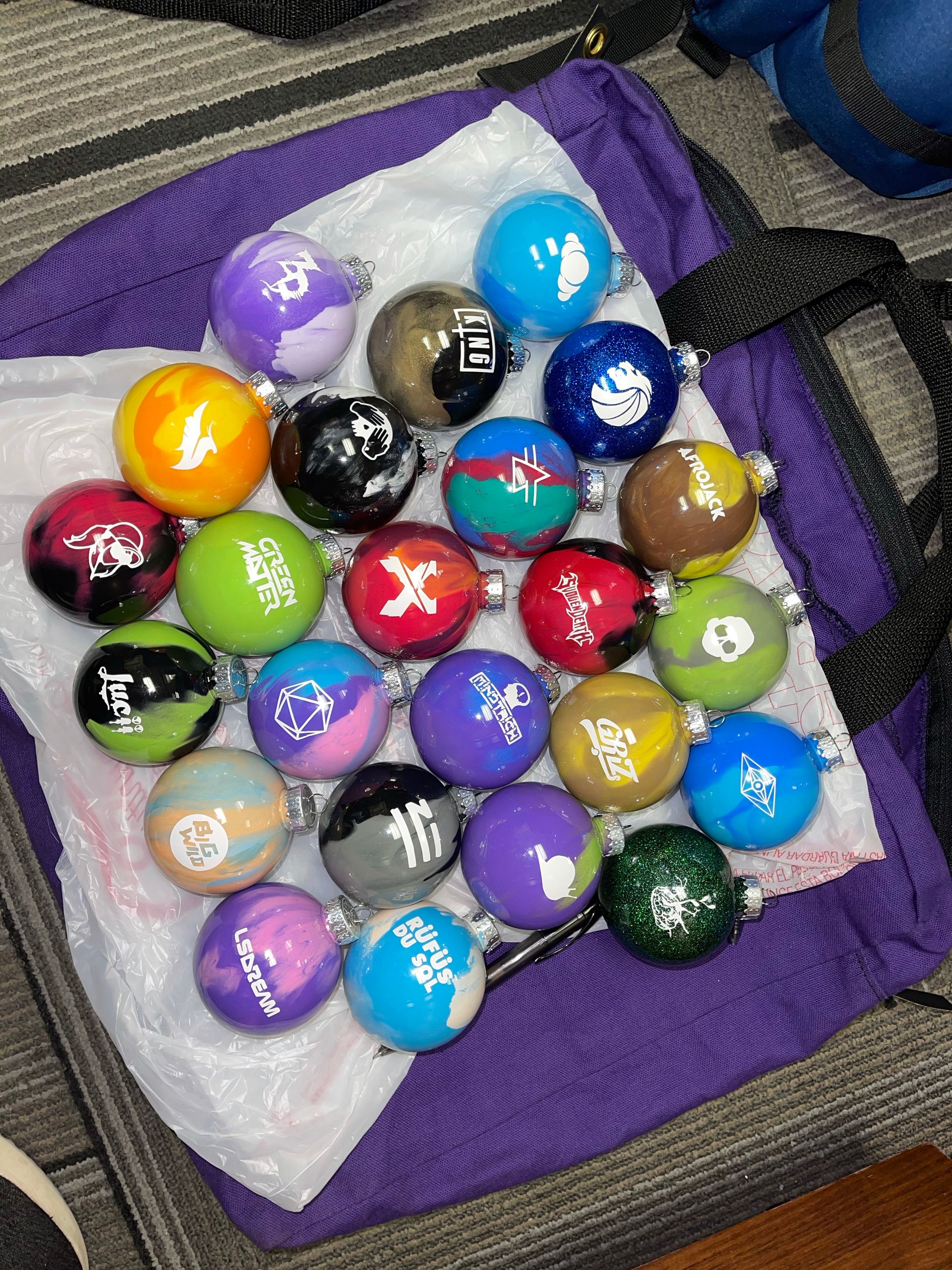 Both include ANY logo in white, black or rainbow holographic color on the ornament :)